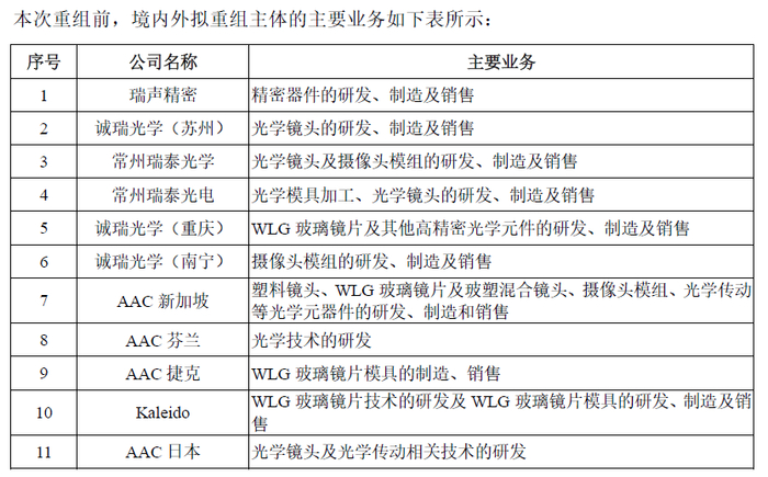 据悉,瑞声科技以换股收购、股权转让等方式将境内外光学业务相关资产整合至诚瑞光学,涉及瑞声精密、常州瑞泰光电AAC新加坡等11家业务主体。上述重组资产总计27.45亿元、营收合计5.81亿元,分别占诚瑞光学自身(重组前)的258.53%、246.38%。