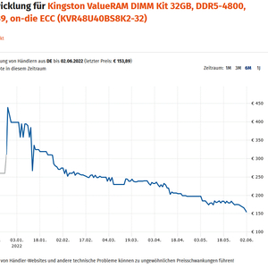 过去 6 个月 DDR5 内存的价格走势图片来源:ComputerBase