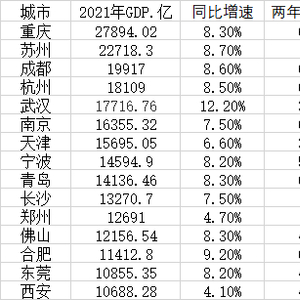 从增速来看,考虑到2020年受疫情影响较大,两年平均增速更有衡量意义。15个新一线城市中,有13个城市公布了两年平均增速,其中合肥、成都和杭州位居前三。