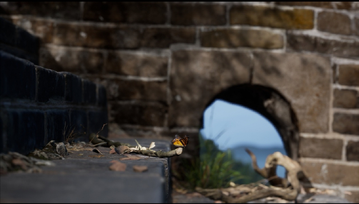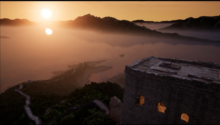 其次,是腾讯自研的PCG生成技术,除了处理多达10亿面片的长城墙体扫描资产,还在周围山体“种植”了超过20万棵树,用户可以 “一镜到底”观赏周边完整的自然环境。