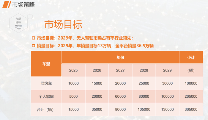 按照不同年份的消费者市场目标数据和生产计划,他们想在4年时间里,取得那几家造车新势力成立至少6年才达到的销售目标。