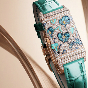 JAEGER-LECOULTRE积家推出两款全新Reverso One Precious Flowers翻转系列珍稀花卉腕表,分别采用蓝色及海沫绿色为主色调。 从风靡20世纪20年代的装饰性珠宝作品中汲取灵感,赞颂娇艳花朵流露的浪漫诗意,采用玫瑰金打造。全新时计搭配色彩鲜艳的亮面鳄鱼皮表带,搭载Jaeger-LeCoultre积家846型手动上链机芯。每款腕表仅限量推出10枚,因此每枚腕表作品上的微绘图案皆独一无二,