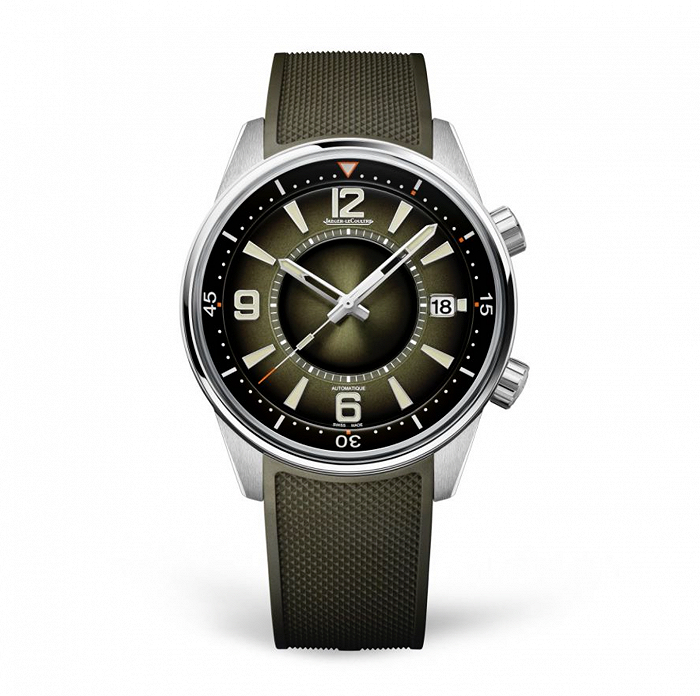 积家北宸系列从1968年极地响闹潜水腕表汲取灵感,诠释运动优雅精神。融合实用功能和复古设计全新推出深绿色渐变表盘款,为日常冒险增添全新色彩。这款腕表的双重渐变漆面表盘搭配多种润饰处理,令北宸系列日历腕表兼具清晰读时及出色美感。从活动内表圈到轨道式分钟圈,表盘采用乳白色润饰、粒面饰纹和太阳放射状饰纹,清晰地将各个关键区域分隔开来。渐变表盘从浅橄榄绿向森林绿过渡,随角度变换折射出不同色调。半透明漆面涂层为表盘增添丰富层次感,香草色指针在其衬托下格外醒目,清晰易读。