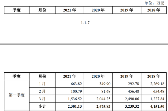 报告期内,发行人按月列示的销售收入金额如下所示: