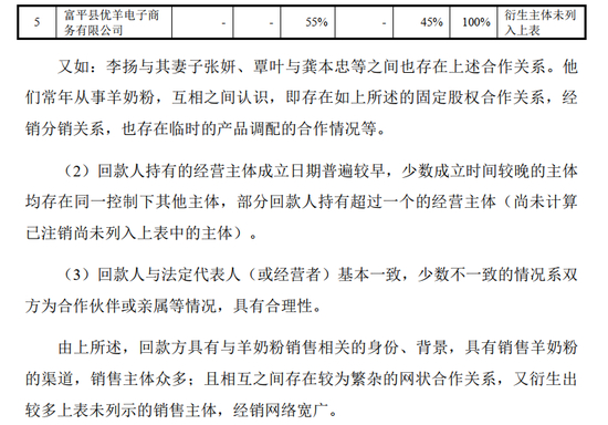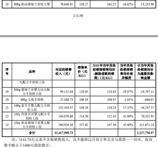 ( 5)除睿妍商贸特定原因外,其他借款经销商采购的均为以往年度也采购的羊乳粉品类,只是 2018 年开始,因为注册制新规,婴幼儿羊乳粉三个系列的产品名称全部发生变化。2018 年前后,借款经销商年底备货的主要品类没有发生变化,与经销商囤货的商业逻辑相匹配。