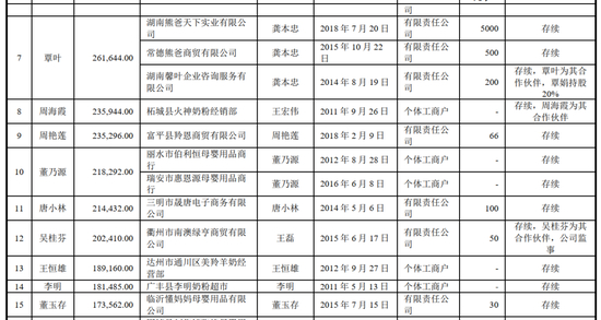 如上表可见,公司2018年向睿妍商贸销售儿童及成人乳粉规模突增。公司经向睿妍商贸实地调查后确认主要原因系:睿妍商贸以前年度也销售儿童及成人乳粉,但是为了追求利益,其主要通过其他经销商途径采购公司的儿童及成人乳粉(俗称“窜货” )。2018年公司逐步加大了对该类行为的发现、打击力度,具体包括在产品包装上标注追溯码,实现对窜货行为的管控及追责,发现窜货行为后降低相关经销商优惠政策,包括减少搭赠比例或直接取消其经营权等。综上,由于公司大力打击经销商窜货,睿妍商贸改变以前儿童及成人乳粉“窜货”采购的方式,转而从公司正规渠道采购。