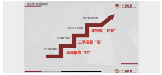 本报记者在该知情人士处获得的一份《中昌数据2021年度工作汇报1.18终稿》PPT中提到,2021年半年报、三季报至2021年年度报告呈现节节高升的趋势。中昌数据新管理层给出2022年中昌数据北京业务中心目标业务收入为“无资金支持保一争二,有资金支持保三争四”。