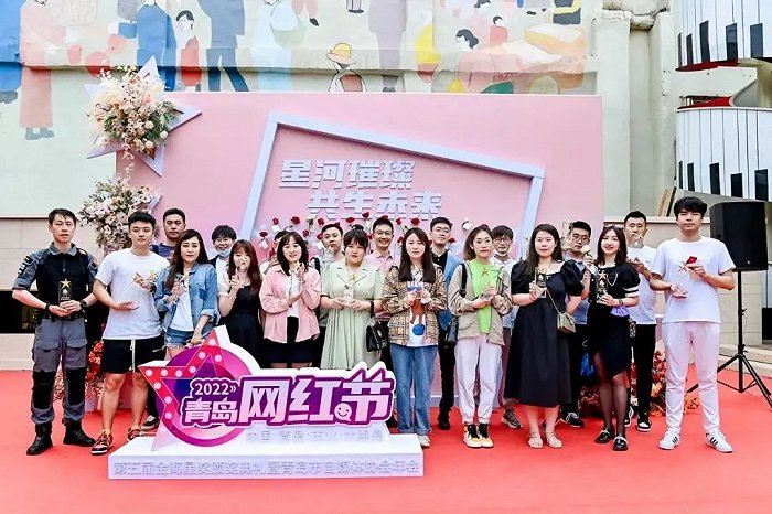 6月10日,2022青岛网红节——第五届金海星奖颁奖典礼暨青岛市自媒体协会年会举行。青岛自媒体大V和网红齐聚一堂,在大鲍岛文化休闲街区,上演了一场引人注目的“红毯大秀”。