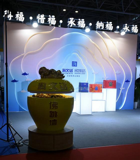 2008年6月,聚春园佛跳墙制作技艺经国务院批准列入第二批国家级非物质文化遗产名录。在预制菜展区有一个摆满各式各样佛跳墙的大转盘,让人看得津津有味。馆内聚春园工作人员介绍说,每一款佛跳墙价格都不一样,从几十元到一千多块的产品都有,满足了消费者的不同需求。