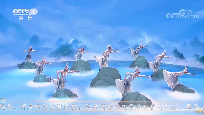 二、全景呈现端午节日内涵,筑牢文化自信。节目深入挖掘了很多端午习俗,形式多样、丰富多彩。如“仲夏端午,飞龙在天”寄托了人们迎祥纳福的美好愿望。节目从《九龙图》叠化到现场,九名舞者逐一展露九种不同性格、状态的龙的形象,最后所有舞者汇聚成一条盘龙,展现“飞龙在天”的磅礴气势,表达出中华民族对龙图腾的崇拜以及“自强不息”的精神气质。《竞渡曲》则根据刘禹锡的诗词改编创作,并将张择端《金明池争标图》中百舸竞渡的画面演绎出来。端午赠扇有扬仁风等美好寓意,《扇舞仁风》通过讲述魏晋名士“谢安赠扇”的故事进行诠释。端午铸剑是民俗,双人剑舞《剑魂》用春秋时期的晋国古剑——少虡剑和曹植《杂诗》、郭震《古剑篇/宝剑篇》等,演绎“宝剑锋从磨砺出,梅花香自苦寒来 ”的意境。端午节佩戴五色丝线以辟邪,兼有祈福纳吉的美好寓意,舞蹈杂技《五色缕》则活化了这一风俗。端午节又称“浴兰节”,节目专门设计歌曲《猗兰操》,来展现古今文人墨客对兰的喜爱,以及兰所代表的高洁品格。《渔家傲·五月榴花妖艳烘》根据宋代欧阳修的名篇进行创作,根据清代画家徐扬的古画《端阳故事图》册进行视觉设计,展现了古人在端午时节观竞渡、悬艾人、裹角黍等丰富多彩的场景。节目嘉宾在讨论时还列举了端午挂艾草、斩五毒、喝雄黄酒等古代防疫驱病的故事,探讨了古人端午祈求安康的民族心理等。凡此种种,堪称一场别开生面的溯源民族根魂之旅。节目依托古籍、古画、诗词、非遗等元素,深度挖掘端午节期间的民风民俗与历史文化,全景式呈现端午节人文与自然兼备的双重意蕴,深一度带来思想性、艺术性兼具的文化浸润。