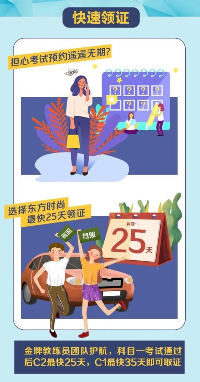 但老黄历翻不得,当下的驾校在硬件设施与管理上都早已不是当年的粗糙水准,甚至,头部驾校的学车体验,已经超乎了老司机们的想象,就拿“驾培一哥”东方时尚来说,软硬件等配套设施与服务水平都让人交口称赞。而且学习效率高,拿本快,科目一考试通过后C2最快25天,C1最快35天就可以取证。
