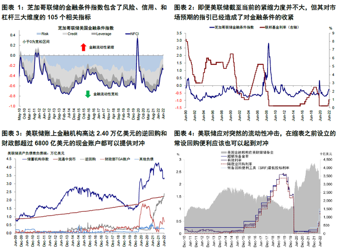 金融条件的不断收紧,既可以起到抑制价格的效果,也会逐步开始抑制甚至侵蚀需求。金融条件收紧到什么程度算紧?如何通过美联储紧缩节奏对应其后续空间?以及如何由此测算对增长的影响?