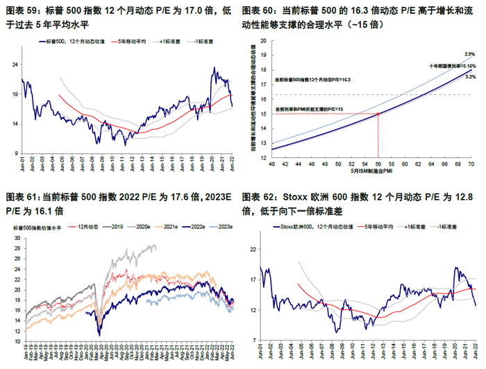 当前标普500的16.3倍动态P/E高于增长和流动性能够支撑的合理水平(~15倍),欧洲股市估值已低于向下一倍标准差。