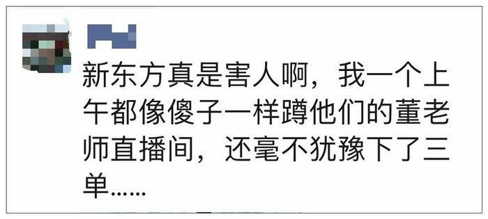 “新东方真是害人啊,我一个上午都像傻子一样蹲他们的董老师直播间,还毫不犹豫下了三单……”从6月10日开始,不少杭州消费者“患”了和橙友蔷薇一样的“病”,定时蹲守新东方的东方甄选直播间,就为了听“长得像兵马俑一样”的董宇辉老师讲英语。