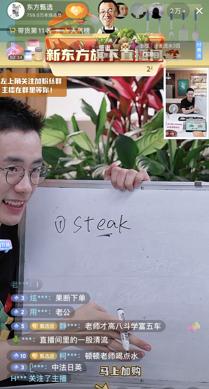 边带货边上课、双语无缝切换,你在新东方直播间野性下单没?