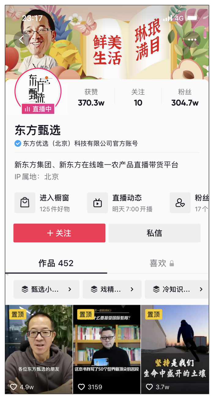 去年12月28日,定位于助农项目的直播平台“东方甄选”上线。和包括好未来在内的大多数教育公司一样,新东方也积极寻求业务转型。彼时大火的直播带货是新东方转型的其中一条路线。