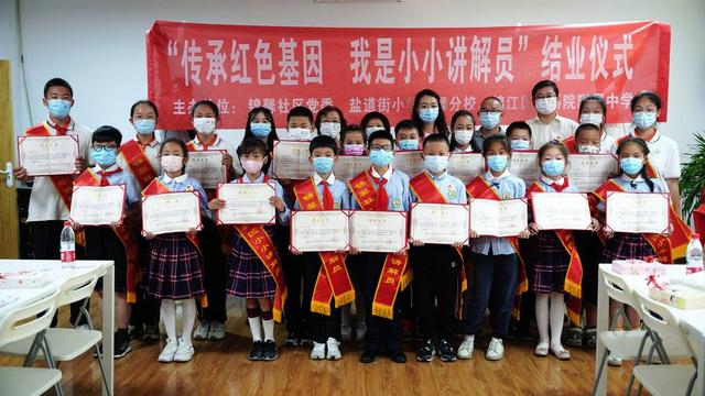 据介绍,锦馨社区党委在街道党工委、团工委、关工委的领导和支持下,以社区红色文献“初心馆”为阵地,充分发挥区域党建优势、加强党建联建,与辖区成都市盐道街小学锦馨分校党支部、锦江区教育科学研究院附属中学党总支部,联合举办了为期两个月的“传承红色基因 我是小小讲解员”活动。期间,共有22名中小学的学生代表参加专业培训,并取得了优异的成绩。