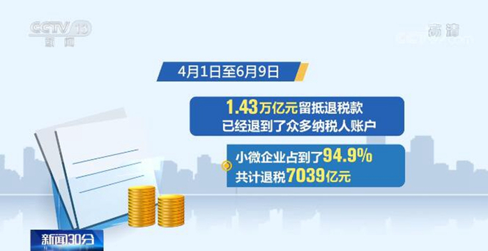 据统计,在全国,4月1日至6月9日,有1.43万亿元留抵退税款已经退到了众多纳税人账户,其中,小微企业占到了94.9%,共计退税7039亿元,这些钱为像老周这样的小企业在最困难的时候带去了最及时的帮助。