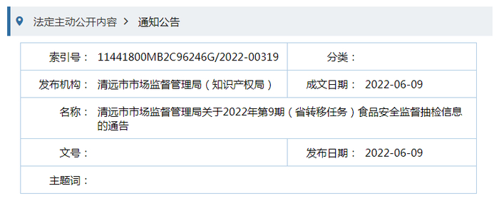 广东省清远市市场监管局公布15批次方便食品抽检合格信息