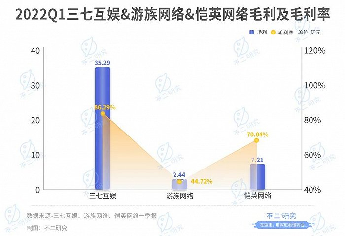 从毛利润来看,一季报数据显示,三七互娱毛利润35.29亿元,同比增长6.97%;恺英网络毛利润7.21亿元,同比增加99.72%;游族网络毛利润2.44亿元,同比减少33.33%。