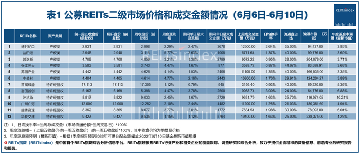 上周12只公募REITs价格全线上涨,导致1季度现时分红收益率预期值相比前一周呈现微幅下跌。