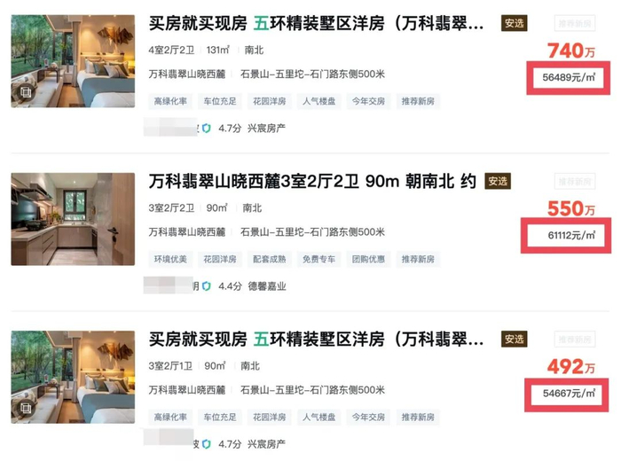 根据安居客的信息,目前五里坨地区的新房单价普遍在5万+,优质项目提高至6万+,而且目前很多新房项目已经进入交房阶段,在一片准现房的区域内冒出来3.1万元/平方米的洋房着实让不少购房者心动。