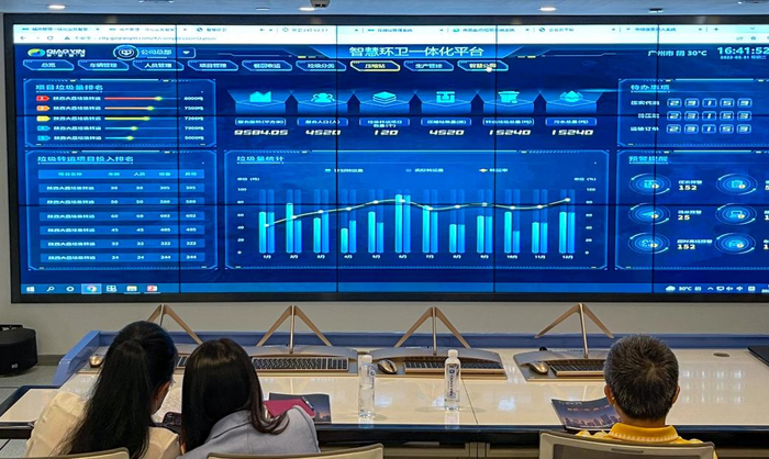 随后,投资者与工作人员一同参观了基于物联网、互联网、大数据等高新技术构建的一体化“侨银智汇环卫平台”。智慧环卫系统有效协同多种业务、提升管理效率,打造一站式运行监督服务体系,通过线上管理与线下作业的融合,实现环卫产业人、车、物与互联网应用的链接。