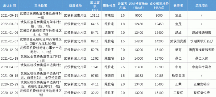 聚焦到近两年。自2020年以来,武侯区共出让成交14宗住宅类用地,就有10宗均位于武侯新城。从出让土地的位置来看,已逐渐从成熟的武侯新城南片区转向北片区。而从土地成交价格来看,武侯新城北片区8宗纯住宅类用地楼面地价都在12400元/㎡以上,其中5宗均超过了15000元/㎡。