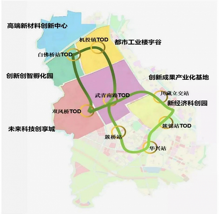 多条轨道交通加持,也让悦湖科技城成为了成都主城TOD最为密集的区域之一。以双凤桥、白佛桥和机投桥三大TOD综合开发项目为主导的TOD生态圈,将构筑科技城TOD立体公园城区。