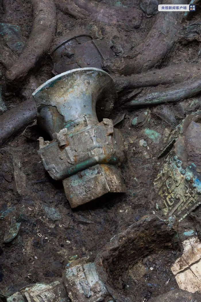 3号坑、8号坑发现的铜尊、铜罍、铜瓿为中原殷商文化的典型铜器,3号坑、4号坑发现的玉琮来自甘青地区齐家文化,3号坑、7号坑、8号坑发现的有领玉璧、玉璋、玉戈在河南、陕西、山东以及广大的华南地区都有发现,各坑大量发现的金器则与半月形地带自古有之的金器使用传统相符。而神树、顶尊跪坐人像以及大量龙形象器物则表明三星堆遗址的使用者在自身认同、礼仪宗教以及对于天地自然的认识与国内其他地区人群相近,无疑确切表明三星堆遗址所属的古蜀文明是中华文明的重要一员。