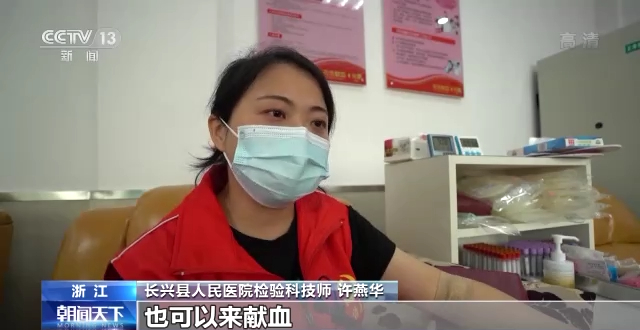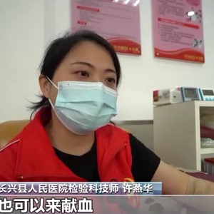 在浙江省长兴县的爱心献血屋,正在排队等待献血的是县人民医院的医务人员。医生张益芳是医院献血团队的“队长”,2004年以来先后15次献血,在她的带动下,医院一半以上的医护人员加入献血队伍。检验科技师许燕华也是第8次献血了,和她一同前来的,还有她12岁的儿子。