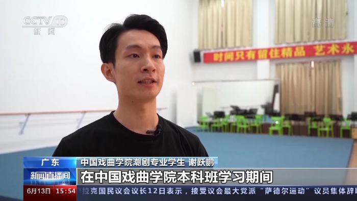 中国戏曲学院潮剧专业学生 谢跃鹏:本身我是武生行当,在中国戏曲学院本科班学习期间,我也是有意识在武戏方面下功夫,希望自己能学到更多规范性的动作,一些高难度技巧。我还希望尽自己所能,把这些知识传承给更多年轻人,把更多的武戏呈现给观众。
