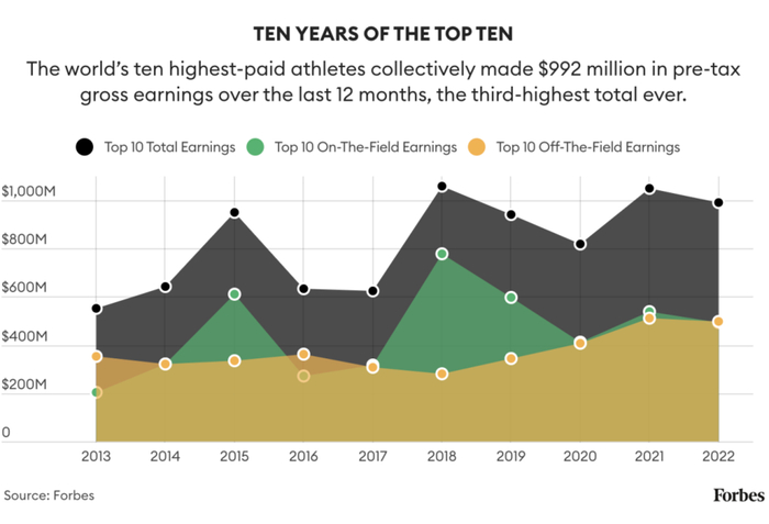 从最新的福布斯运动员收入排行中,我们解读出了如下五个趋势。