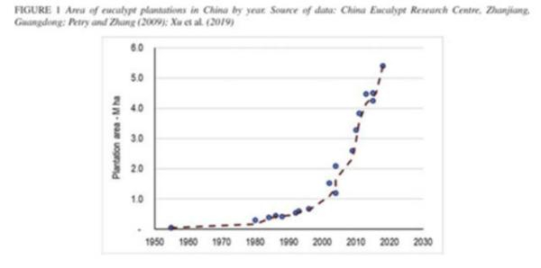 我们前面谈到了桉树在南非、加利福尼亚、印度的早期扩张。现在世界上最重要的桉树种植园仍然在热带地区,包括了亚热带和全热带。但是早期在热带地区引进桉树的努力是失败的。它们生长得并不快,不久就死了,对木材供应没有多大帮助。但是第二次世界大战后,我们看到桉树的种植数量大量增加,在印度、泰国、印度尼西亚、巴西和中国南方都出现了十分繁荣的状况。中国也成为桉树研究和种植的世界领导者。这一在热带地区的繁荣扩张主要是由澳大利亚援助和支持的,当然少不了其他国家的参与。联合国有一个粮食和农业组织(Food and Agricultural Organization, F.A.O.)支持在世界各地种植桉树。现在,澳大利亚的研究人员与外国科学家合作,比如中国,澳大利亚和中国的研究人员在20世纪80年代开始合作,寻找最好的树种和最好的产地,然后寻找在外国条件下种植这些树种的最佳方法。澳大利亚国际农业研究中心从20世纪80年代初开始支持这项工作。而澳大利亚早先也曾努力将桉树推广到世界各地,但方法不太科学。这些合作集中在亚洲和非洲。与其他国家建立积极的关系是澳大利亚外交政策的一部分。这项研究对于确定哪些树种在热带地区生长得最好非常重要。