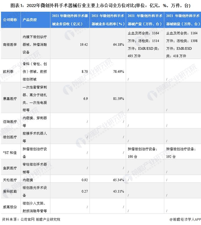 1、中国微创外科手术器械行业主要上市公司全方位对比