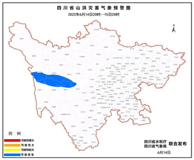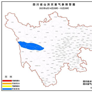 6月14日,四川省水利厅和四川省气象局联合发布山洪灾害蓝色预警。