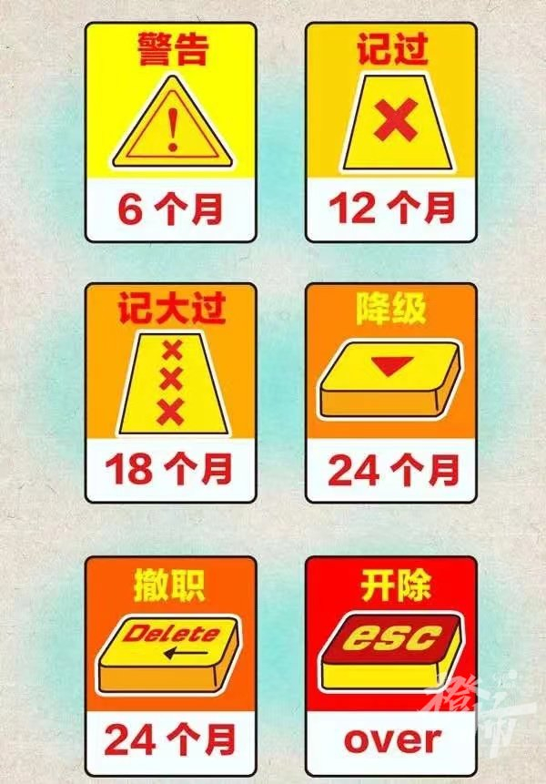 2020年6月,《中华人民共和国公职人员政务处分法》正式颁布。其中规定了警告、记过、记大过、降级、撤职、开除等六种政务处分和各自的影响期,影响期分别为6个月、12个月、18个月、24个月、24个月。