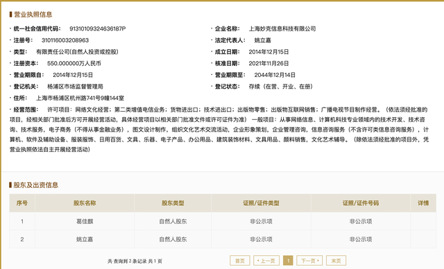 不过从国家企业信用信息公示系统查询VIP陪练的运营主体上海妙克信息科技有限公司的现有股东出资情况来看,公司的股东仍为个人。