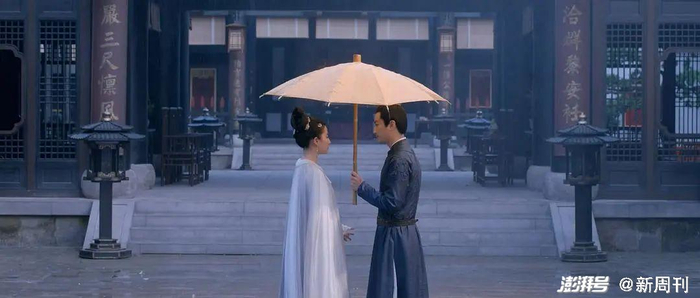 为了在因出镜频率过高而略显枯燥乏味的横店拍出独属于“顾盼生辉”的浪漫,导演把一出相遇的戏份安排在了一个略显阴沉的雨天。