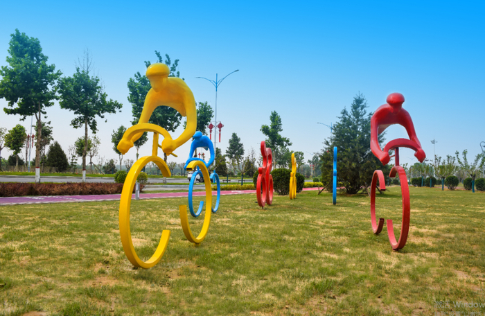 公园设置了运动雕塑。