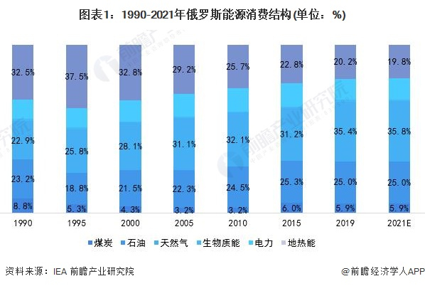 俄罗斯能源消费结构较为均衡,天然气供给尤为充足