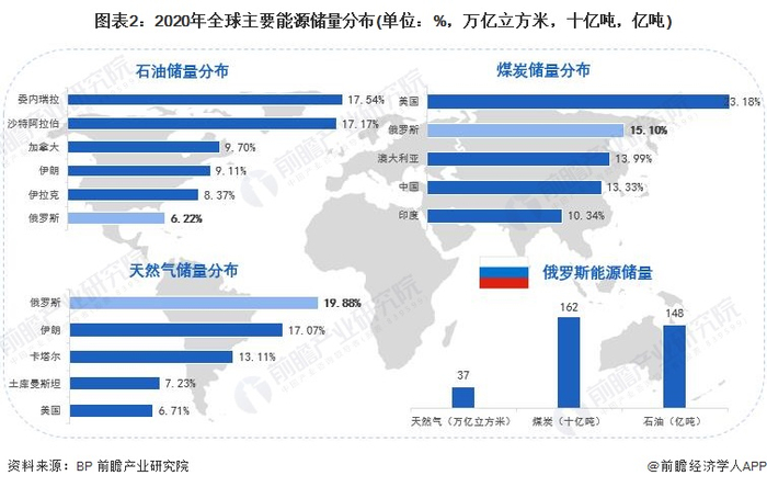 从能源的储量来看,俄罗斯的石油、煤炭、天然气储量均处于全球前列,尤其是天然气,储量全球第一。