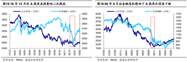 和18Q4类似,本次政策不断发力下A股自今年4月27日低点以来已明显上涨。我们在前期报告《这次金融委会议与18年10月的异同-20220321》中分析过,当前我国货币、财政和地产政策均强于18年底,而18年12月美股下跌时,A股二次探底后也仅是略低于前期低点,因此目前来看即便未来美股再次下跌引发A股回调,我们认为A股低于4月27日低点的可能性较小。