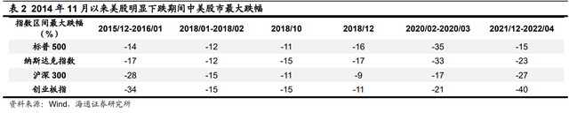 去年底以来至今美股迎来了明显的回调,尤其是4月以来截至到5月20日美股收盘,标普500指数连续7周下跌创下2001年以来最长的连跌记录,而纳斯达克指数周线更是已经8连跌,创下1923年以来最长的连跌记录。如何看待本轮美股的下跌?我们以史为鉴,对历史上美股较为明显的下跌区间做一个分析。