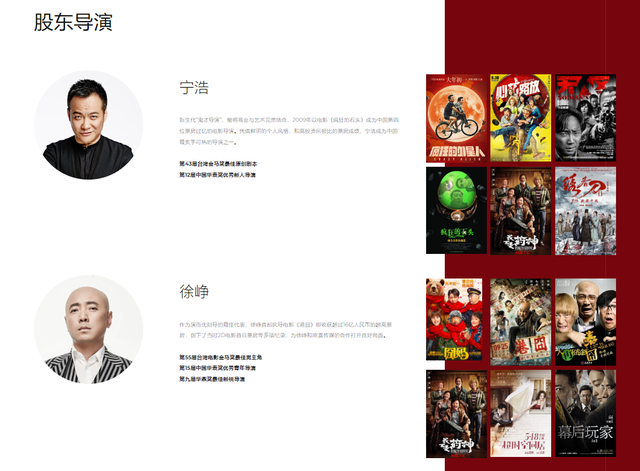 公开资料显示,宁浩、徐峥在2015年入股欢喜传媒时分别占据19%的股份,是第二大股东。此外,欢喜传媒旗下股东导演还包括宁浩、徐峥、陈可辛、王家卫、张一白、顾长卫、张艺谋等,被业界称为“导演天团”。