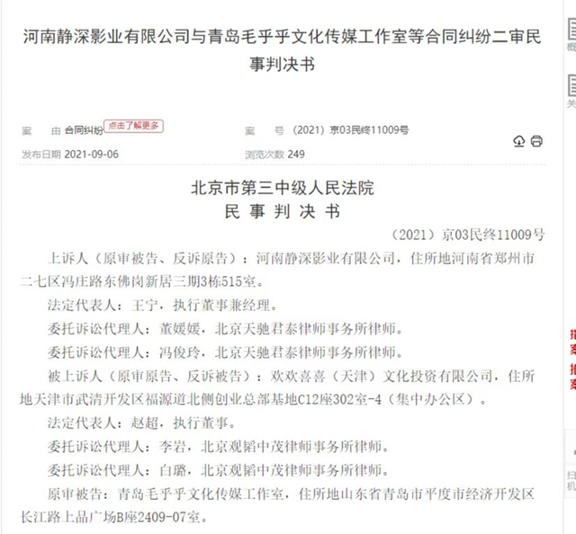 静深影业方面提出上诉,但终审法院判决驳回上诉,维持原判。
