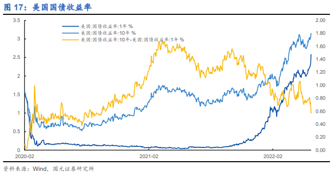 截止6月10日,10Y/1Y美国国债收益率分别为3.15%和2.58%,较上周分别上升了19BP和40BP;期限利差为0.57%,较上周略有下降。