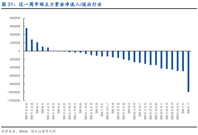 市场主力资金流向:上周市场资金流向统计显示,全行业主力净流出额总计约498.53亿元,较前一周净流出额减少322.18亿元。净流出行业明显多于净流入行业,净流出较多的行业有电子、汽车、机械设备、建筑装饰和农林牧渔。
