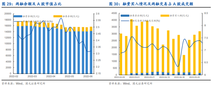 杠杆资金——融资融券:两融规模:两融融资余额约为15327.756亿元,占A股流通市值2.32%,两融规模略有增加,两融余额占A股流通市值保持不变。两融交易:两融交易额为3372.10亿元,两融交易占A股成交额为7.97%,两融交易规模和两融交易占A股成交额均有明显上升。