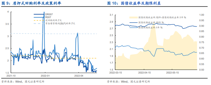 货币投放与派生:上周央行货币市场资金净投放100亿元;5月,M1增速4.6%;M2增速11.1%。2022年5月新增社融2.79万亿元,金融机构新增人民币贷款1.89万亿元,较上月相比总量数据已有回升,但信贷结构尚待改善,实体经济对于资金的需求弱于供给,企业及居民未来预期仍未改善。